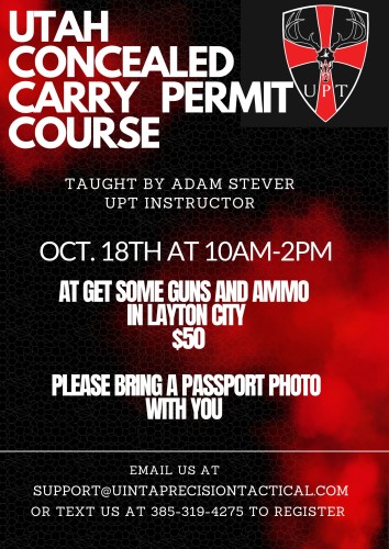 This course will meet the requirements of the State of Utah. This course is taught by UPT instructor Adam Stever who is a former Army Ranger with the 75th and Utah State certified CCW course instructor. He will take the time to teach you all of the required information as well as the information you need to know to be a responsible CCW holder. Your fingerprints will be taken in class and your Utah State CCW application will be stamped by Adam once the course is finished. This course is both informative and fun, and all who take it have a good time and leave with a good experience. Adam teaches this course in a way no one else does. If you've ever wanted to get your Utah State CCW, or if you've let it lapse, this course will take care of it all.