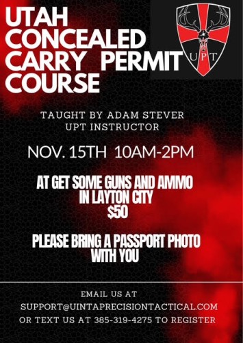 This course will meet the requirements of the State of Utah. This course is taught by UPT instructor Adam Stever who is a former Army Ranger with the 75th and Utah State certified CCW course instructor. He will take the time to teach you all of the required information as well as the information you need to know to be a responsible CCW holder. Your fingerprints will be taken in class and your Utah State CCW application will be stamped by Adam once the course is finished. This course is both informative and fun, and all who take it have a good time and leave with a good experience. Adam teaches this course in a way no one else does. If you've ever wanted to get your Utah State CCW, or if you've let it lapse, this course will take care of it all.